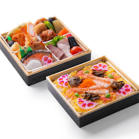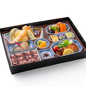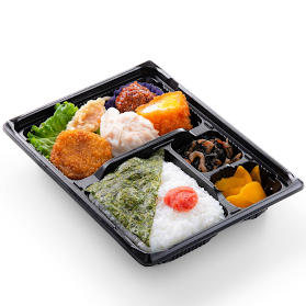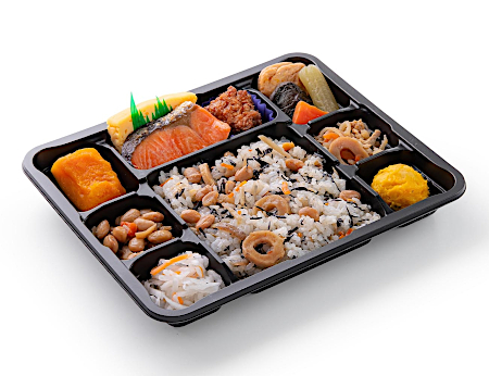 ひじきご飯・銀鮭切身・・鶏肉団子・だし巻き玉子・煮物(がんも・椎茸・ふき・人参)・千切大根煮・ほくほくサラダ・かぼちゃ煮・五目大豆煮・大根生酢